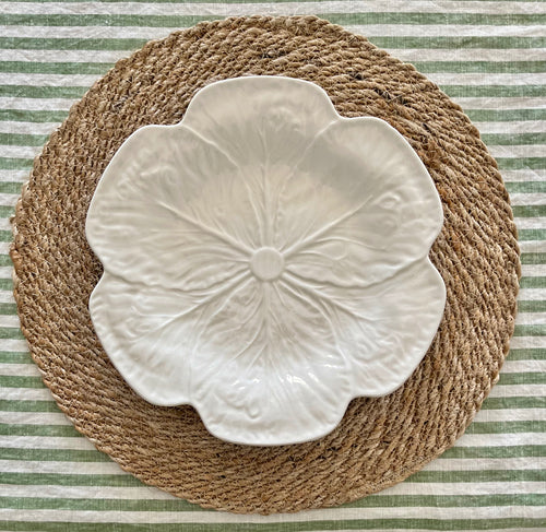 Striped French Linen Tablecloth in Green and Warm White -